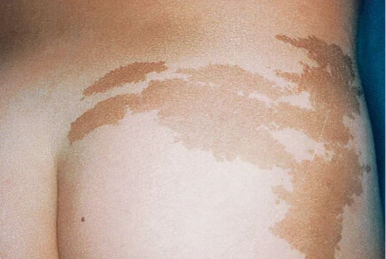 ③ 多出现在日晒不到的部位,比如腋窝、腹股沟等。