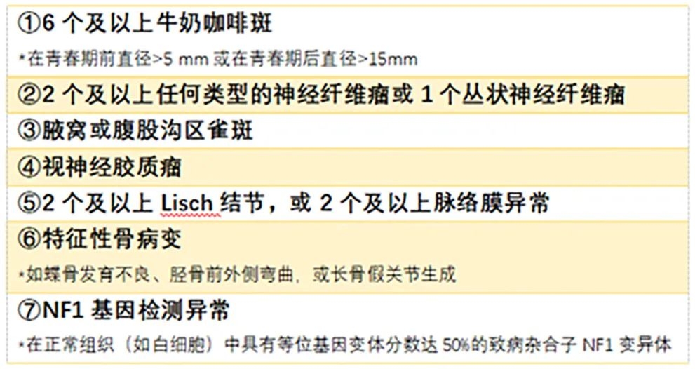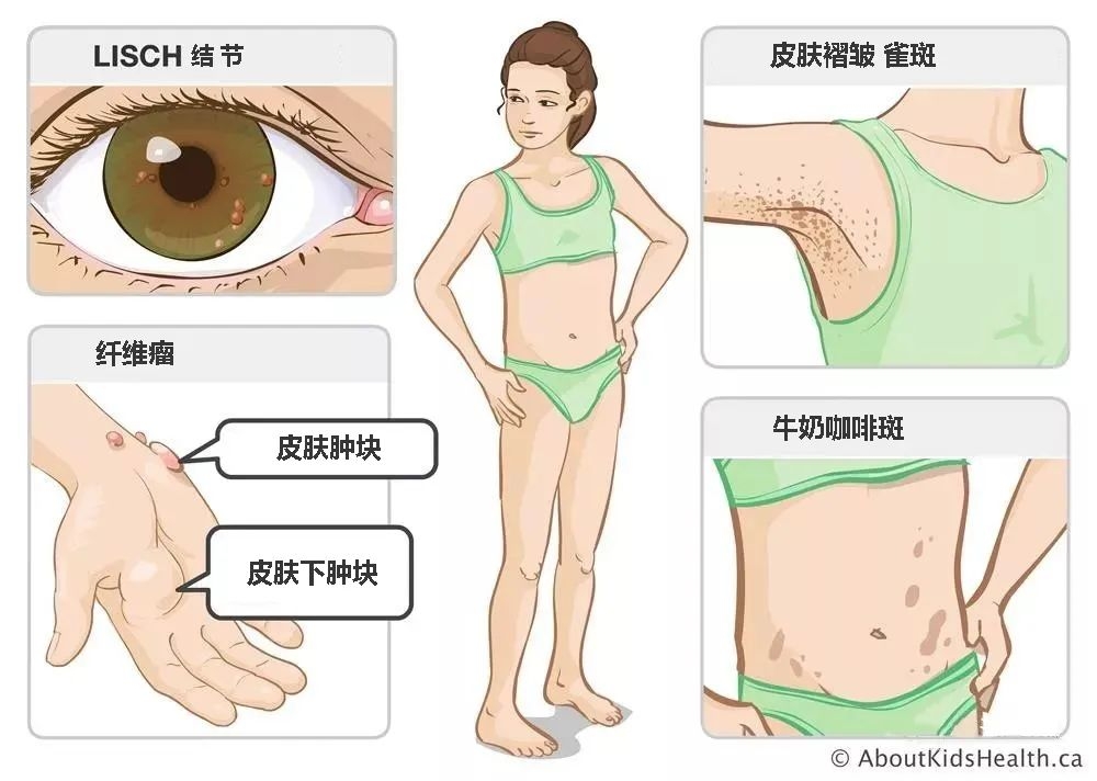 提醒:临床症状的出现和症状的严重程度因人而异,主要症状还是咖啡牛奶斑和神经纤维瘤。