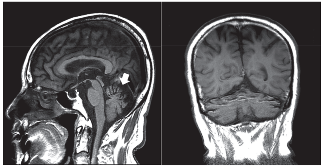 颅脑MRI示小脑萎缩