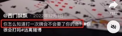 值得一提的是,2022年12月1日,西门飘飘发布了一个视频,并配文:“你怎么知道打一次牌会不会要了你的命?”
