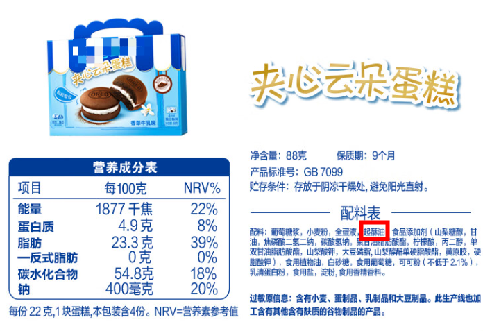 起酥油、人造酥油、植物酥油
