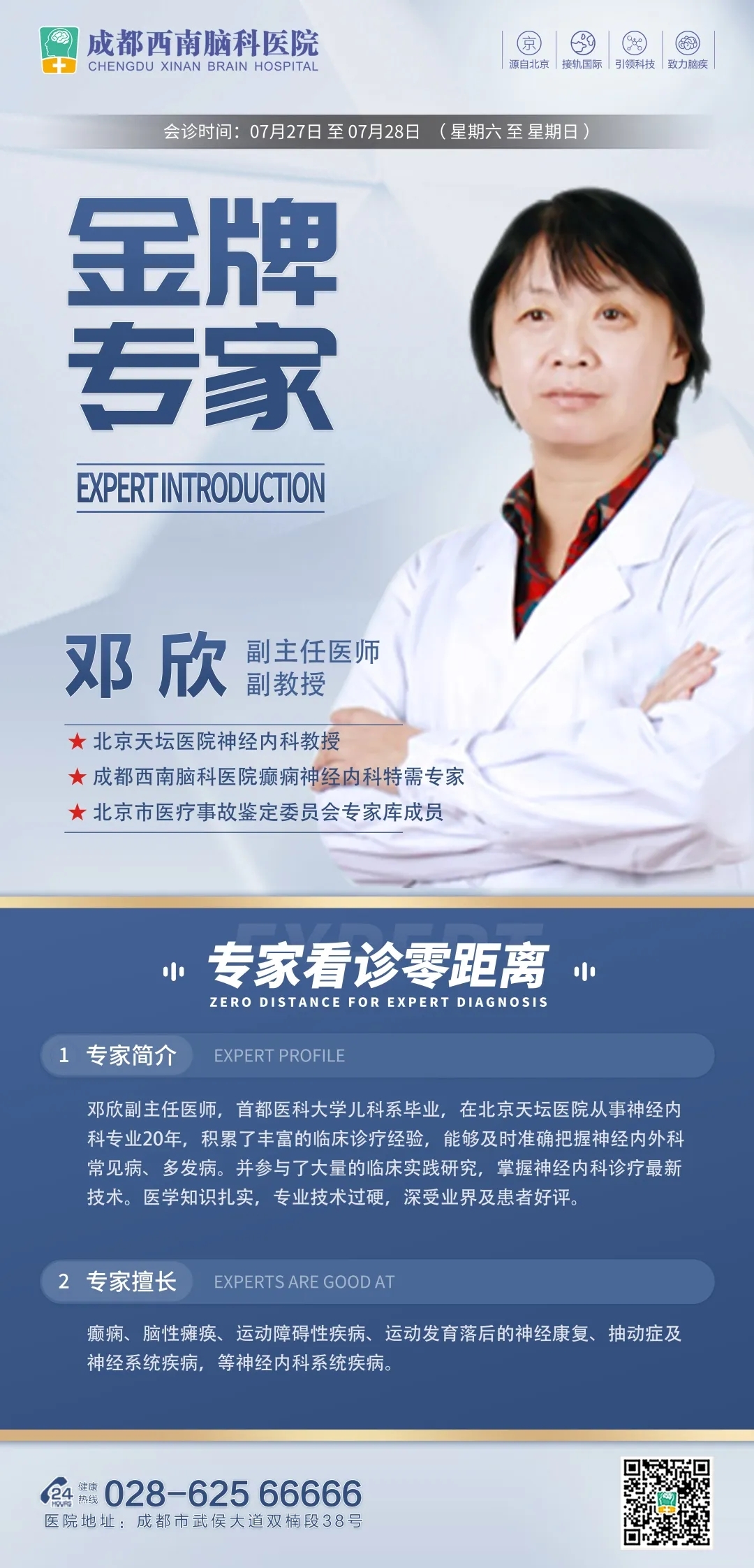 会诊预告 | 7月27~28日,北京天坛医院邓欣教授来院会诊,助力抗