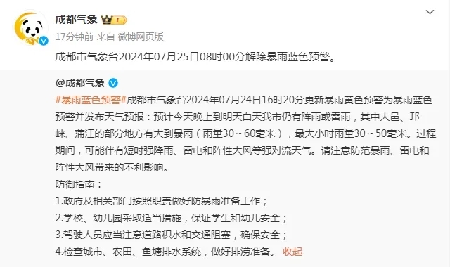 成都市气象台2024年07月25日08时00分