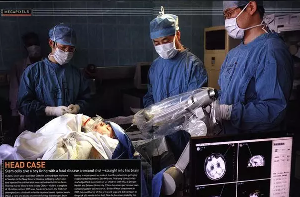 脑立体定向仪+神经调控技术,是借助目前医学界较先进的航天机器人手臂,运用微侵袭神经外科技术(CT脑立体定向、神经导航结合显微手术等)进行病灶靶点定位,建立与靶点对应的三维坐标体系快速准确定位脑内病变的神经细胞核团或神经纤维,采用该机器人手臂的精密传感器进行专业分析,将仅0.3mm的射频消融针探入脑部病灶,实施病灶损毁、神经细胞核团或神经纤维功能调控;同时,机器人手臂还会将正常功能的T神经细胞准确无误的植入受损病灶,激活和修复该区域的神经细胞,从而修复、激活已经受损的大脑皮层,恢复大脑神经细胞功能的再平衡,不仅从根本上治疗了脑病,且还让患者康复到了接近正常人的水平。