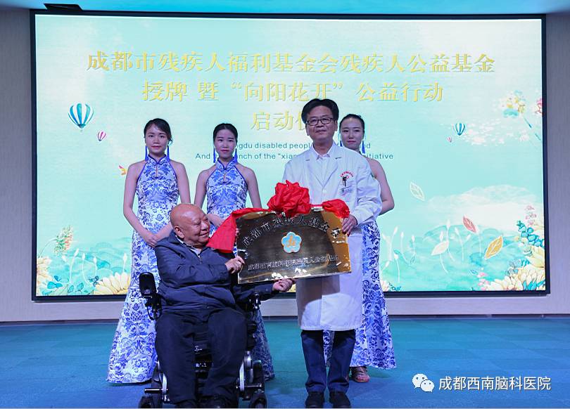 每年的5月21日是全国助残日,2017年全国助残日主题是“推进残疾预防 健康成就小康”。每年的这一天,各政府机构、慈善组织等都会开展各种各样的慈善公益活动,旨在号召全社会共同关心、关注残疾人群体,给他们爱与帮助。成都市残疾人福利基金会·残疾人公益基金“向阳花开”公益行动是由成都市残疾人福利基金会于2017年全国助残日时发起,并适用于四川省成都地区贫困脑瘫患者的免费援助及医疗费用部分援助的公益行动。5月26日,由成都市残疾人福利基金会主办,成都西南脑科医院承办的成都残疾人福利基金会残疾人公益基金授牌暨“向阳花开”公益行动启动仪式在成都西南脑科医院隆重举行。