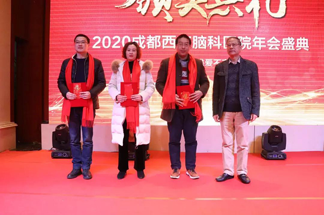 颁奖典礼上,四川大学华西医学研究中心研究员、四川大学基础医学与法医学院原副院长、成都西南脑科医院名誉院长先生做了新春献词。他说,2020年,我们将强化“医生治院,技术强院,服务兴院”的办院路线,团结全院员工共同为建设西南地区一流的脑病专科医院而努力!