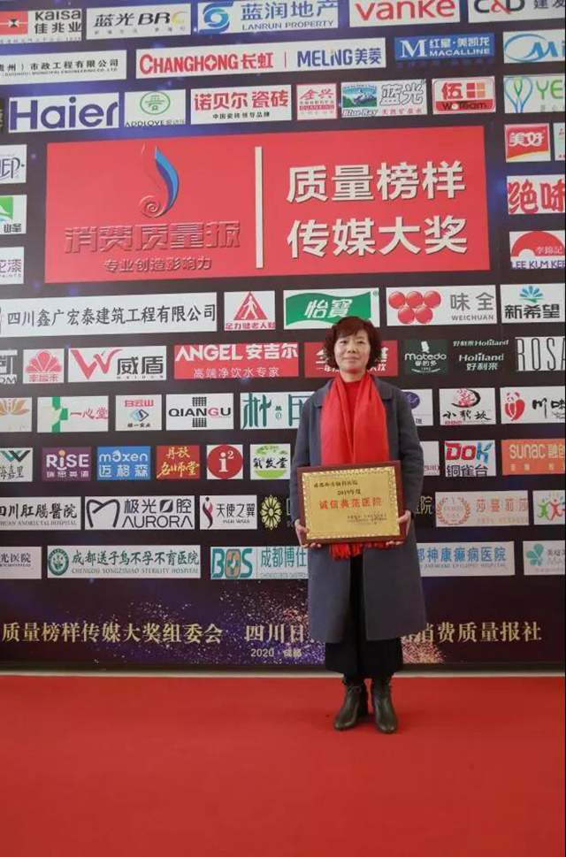 洞见质量脉搏,彰显榜样力量。1月11日,“质量榜样第九届传媒大奖颁奖典礼”在蓉隆重举行。本次活动的指导单位是四川省市场监督管理局、四川日报报业集团,主办单位是质量榜样?传媒大奖组委会、四川日报报业集团消费质量报社、消费质量网。成都西南脑科医院业务院长邢雯梅女士受邀出席并领取了“诚信典范医院”大奖。