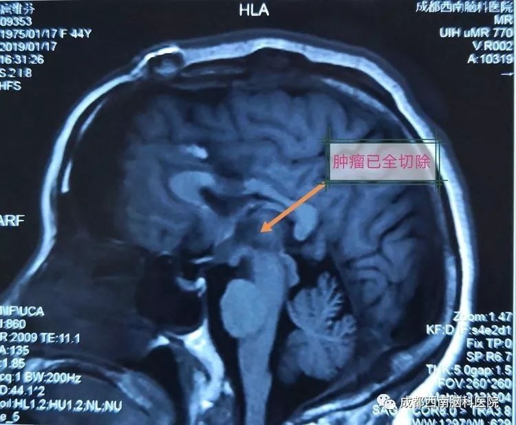 术后复查MRI显示已全部切除